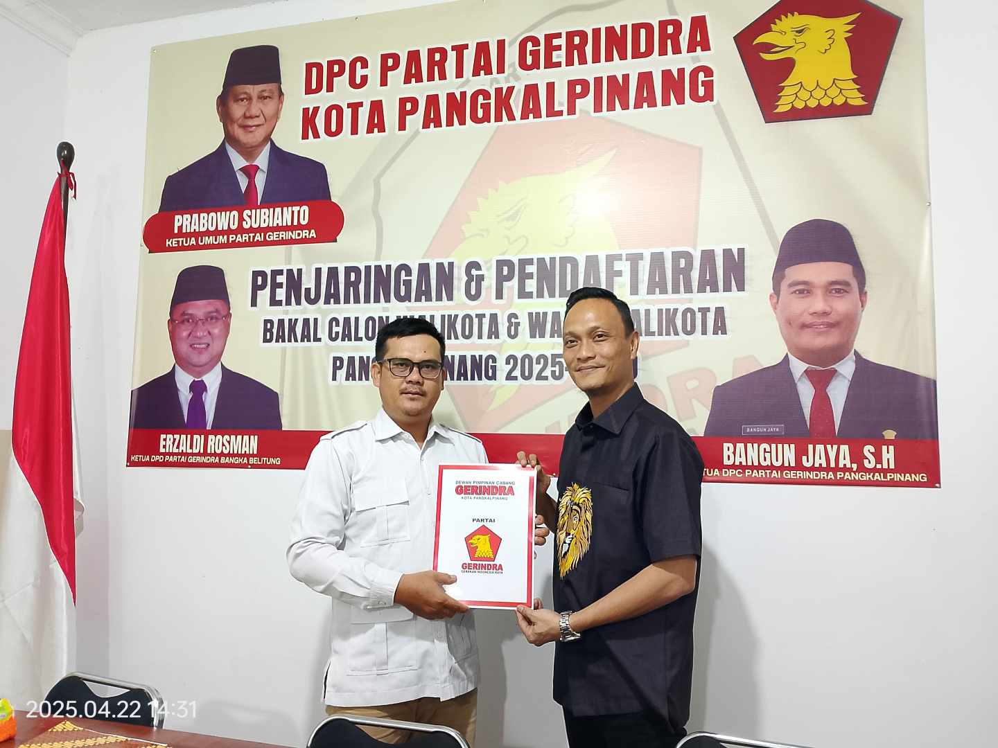 Adhy Sarphio Resmi Kembalikan Berkas Formulir Pendaftaran Pilwako 2025 ke DPC Gerindra Pangkalpinang