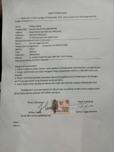 Kesepakatan damai itu dituangkan dalam surat pernyataan yang ditandatangani di atas materai 6000 pada Kamis (20/11/2025) sekitar pukul 19.31 WIB.