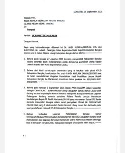 Laporan resmi mengenai dugaan pemalsuan itu telah dilayangkan ke Bawaslu Bangka pada 9 September 2025 dengan nomor registrasi 04/Reg/LP/PB/Kab/09.02/IX/2025.