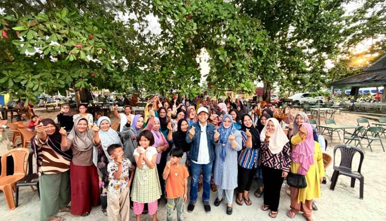 Babeltoday.com|Pangkalpinang ~ Kehadiran Basit Cinda yang memenuhi undangan emak-emak atau ibu-ibu pedagang di Pantai Pasir Padi untuk bersilaturahmi, disambut meriah. Teriakan ‘calon wali kota kami’, ‘calon wali kota kami’ yang ditujukan kepada tokoh muda karismatik ini pada Selasa sore, 10 Juni 2025, bergemuruh di kawasan wisata pantai satu-satunya di Kota Pangkalpinang ini.