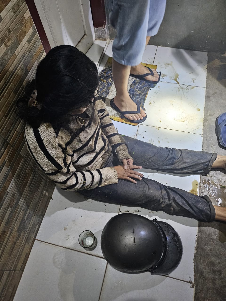 Tanpa disadari, seorang pria tak dikenal telah membuntutinya. Setibanya di depan perumahan, pelaku menendang motor korban dari sisi kiri hingga terjatuh.