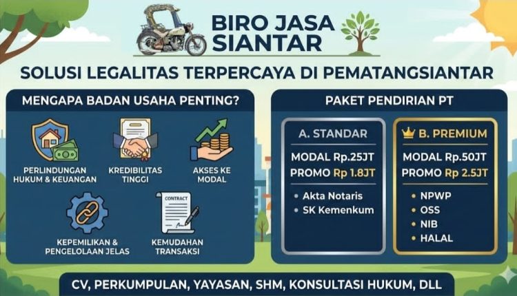 Babeltoday.com|Pematangsiantar – Di tengah pertumbuhan dunia usaha yang semakin pesat, kebutuhan akan legalitas bisnis menjadi hal yang tidak dapat diabaikan oleh para pelaku usaha. Menjawab kebutuhan tersebut, Biro Jasa Siantar hadir sebagai mitra profesional yang siap membantu masyarakat dan pengusaha di wilayah Pematangsiantar dan sekitarnya dalam mengurus berbagai kebutuhan legalitas usaha secara cepat, transparan, dan terjangkau.