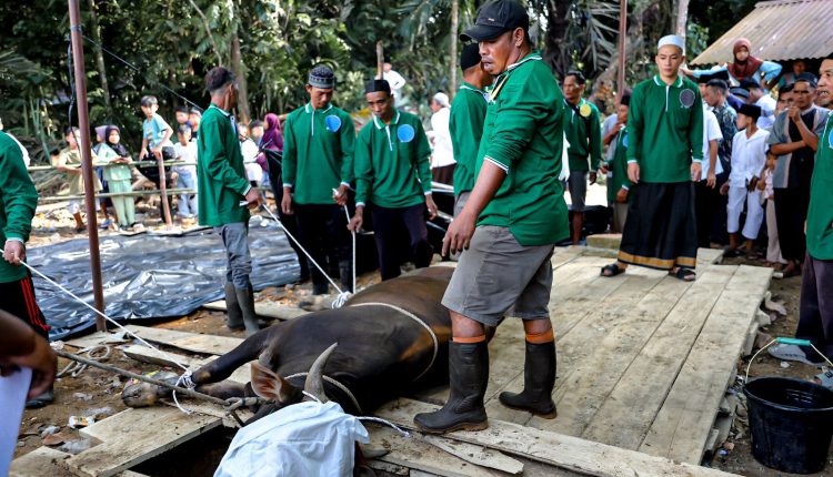 Acara pemotongan hewan kurban di depan Masjid Al – A’raf berlangsung dengan tertib dan lancar, serta mendapat apresiasi dari warga sekitar yang turut menyaksikan prosesi tersebut. (Red/*Humas Pemkab Bangka Barat)
