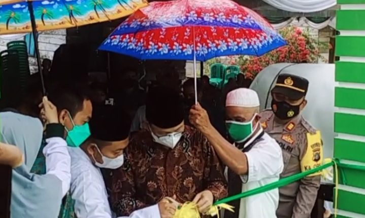 Usai sambutan, Bupati Bateng Algafri didampingi Kapolsek Pangkalan Baru AKP Joko Murtono, Danpos TNI AL Lettu Puji, Direktur CV GSP Sujono (Athau) serta perwakilan pejabat PT Timah dan tokoh masyarakat/tokoh agama seketika itu pun melakukan pengguntingan pita secara seremonial sebagai tanda masjid Ilmal Yaqin diresmikan olehnya saat ini.