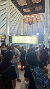 Pantauan di terminal A5 Bandara Soekarno-Hatta, suasana ruang tunggu terlihat panik dan penuh kebingungan.