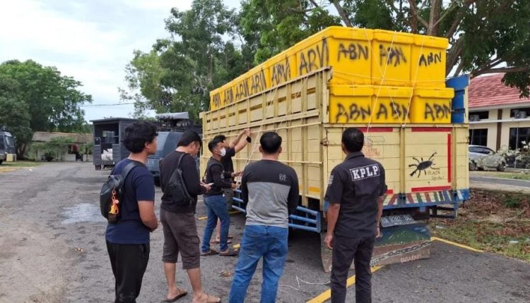 Anggota Ditreskrimsus yang berada di lapangan melakukan pemeriksaan menyeluruh terhadap muatan truk, termasuk dokumen pendukungnya.