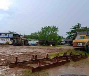Di sekitar lokasi, terlihat tumpukan limbah slag timah, pohon kelapa sawit, serta sisa bangunan gudang. Tidak jauh dari sana, terdapat beberapa akses pintu gerbang lainnya yang memungkinkan kendaraan keluar masuk tanpa harus melewati pintu utama smelter PT TIN dan petugas penjagaan.