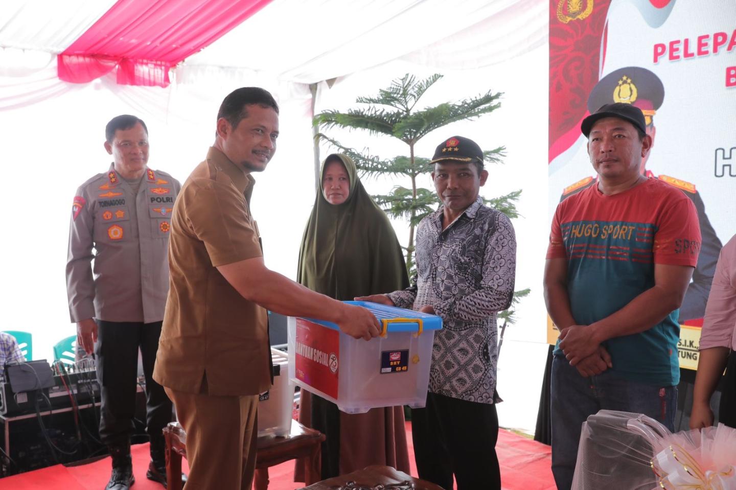 BABELTODAY.COM, LUBUK BESAR – Menyambut Hari Bhayangkara Ke-78, Polda Kepulauan Bangka Belitung (Kep. Babel) menggelar beragam kegiatan sosial, di antaranya pemberian bantuan sosial, bakti sosial religi, donor darah, bedah rumah hingga pembuatan fasilitas air bersih kepada warga yang membutuhkan. Kegiatan ini berlangsung di Lapangan Desa Perlang, Kabupaten Bangka Tengah, Selasa (25/6).