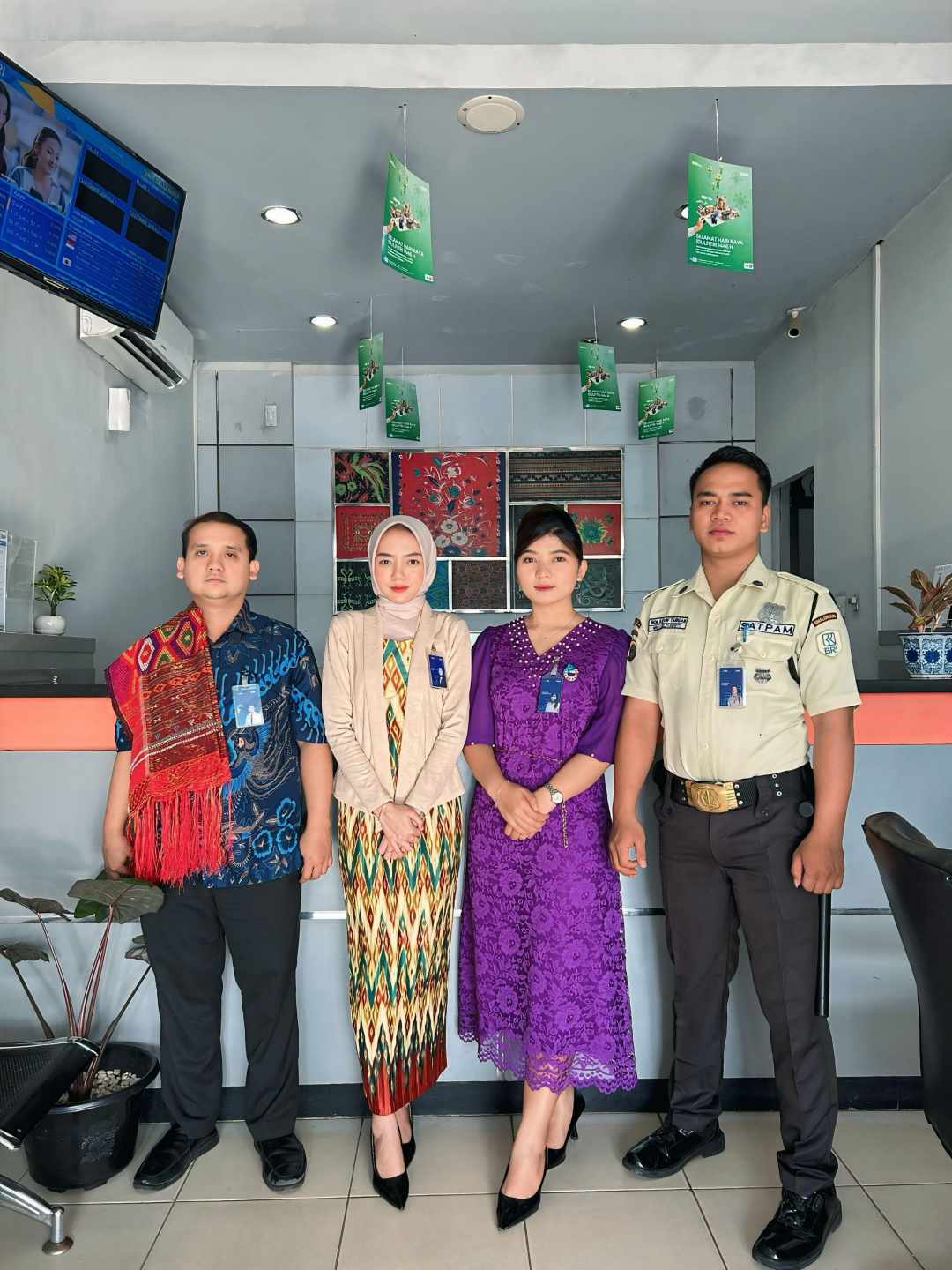Suasana di lingkungan kerja BRI Kanca Perdagangan tampak semarak dan penuh warna. Para pekerja, baik laki-laki maupun perempuan, mengenakan baju adat dari beragam suku di nusantara. Pakaian tersebut tidak hanya mencerminkan keberagaman budaya Nusantara, tetapi juga mempertegas semangat kebersamaan dan nasionalisme di tengah perbedaan.