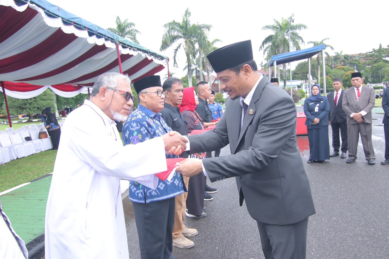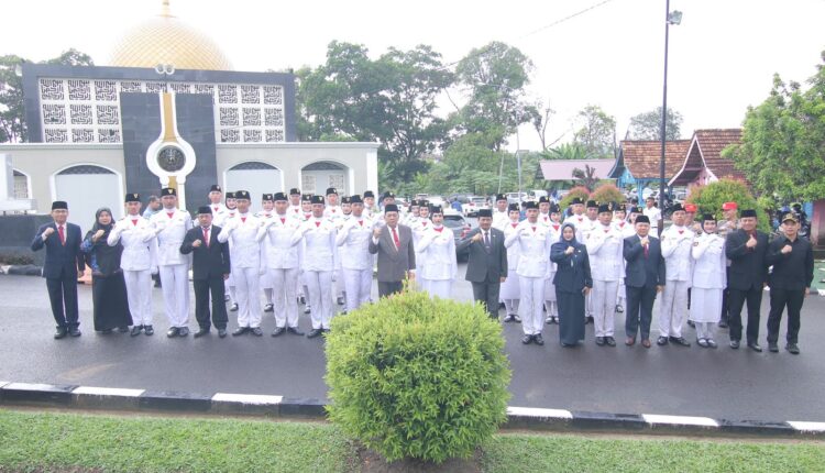 BABELTODAY.COM, PANGKALPINANG – Pj Sekda Kepulauan Bangka Belitung, Fery Afriyanto, menjadi inspektur upacara peringatan Hari Lahir Pancasila membacakan sambutan Kepala Badan Pembinaan Ideologi Pancasila (BPIP) Republik Indonesia Yudian Wahyudi, di hadapan ratusan peserta upacara, baik ASN, PPPK, dan tenaga kontrak di Halaman Kantor Gubernur Kepulauan Bangka Belitung. Sabtu (1/6/2024).