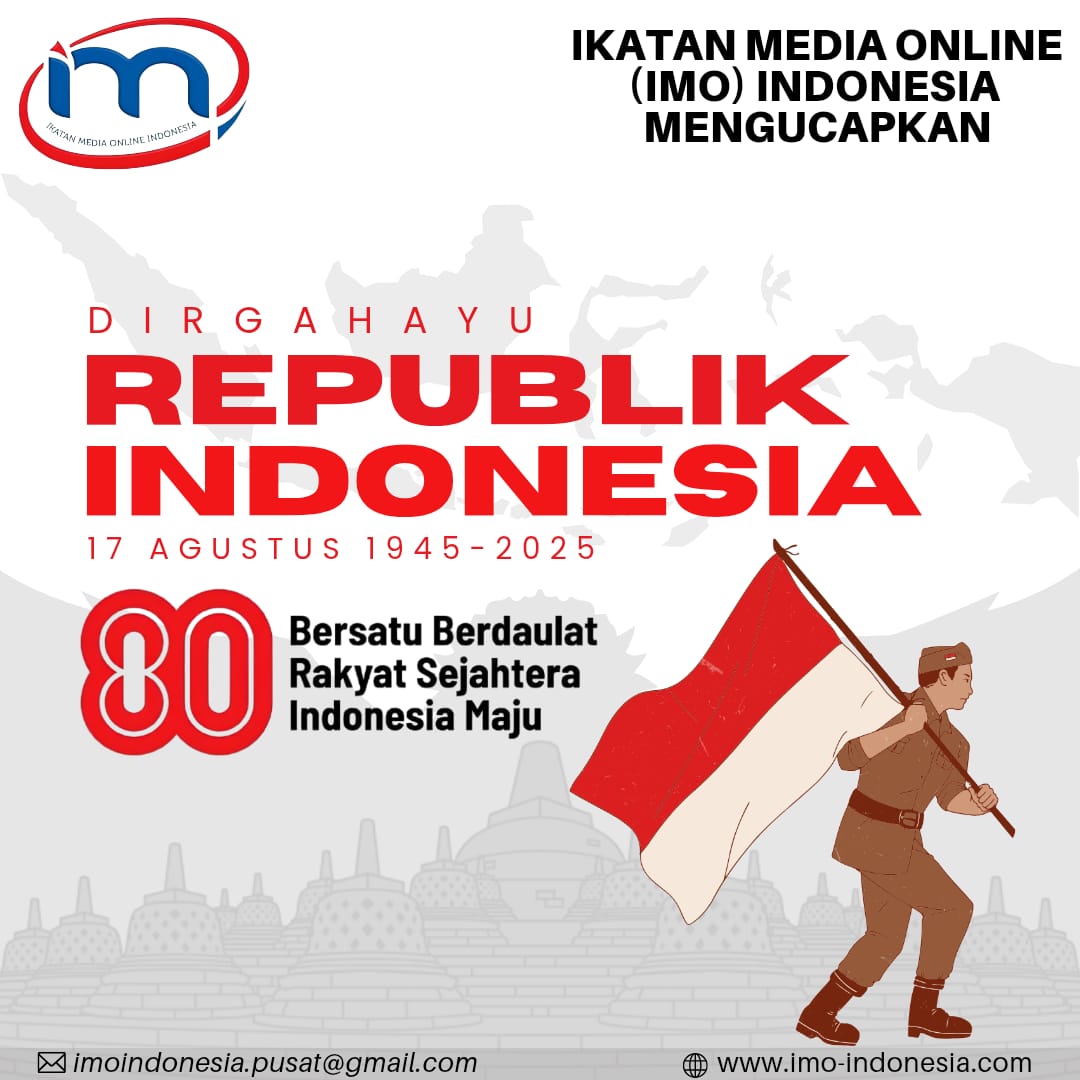 Babeltoday.com, Jakarta – Ikatan Media Online (IMO) Indonesia menyampaikan ucapan selamat atas peringatan Hari Ulang Tahun (HUT) ke-80 Kemerdekaan Republik Indonesia yang jatuh pada 17 Agustus 2025. Dengan tema penuh semangat, “Bersatu Berdaulat, Rakyat Sejahtera, Indonesia Maju”, IMO-Indonesia mengajak seluruh masyarakat untuk menjadikan momentum ini sebagai refleksi perjalanan panjang bangsa dalam mengisi kemerdekaan.