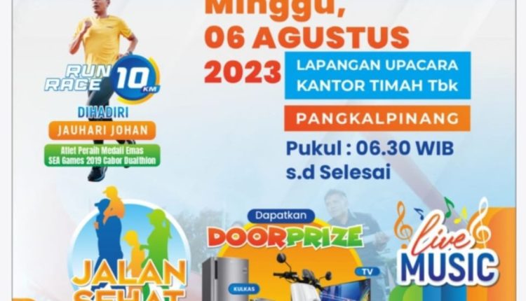BABELTODAY.COM (PANGKALPINANG) — || Dalam rangka memeringati HUT ke-47 Perusahaan, PT Timah Tbk menggelar Pekan Sehat di Kota Pangkalpinang pada Minggu 6 Agustus 2023. Pekan Sehat kali ini menghadirkan kegiatan Fun Walk atau Jalan Sehat yang akan dilaksanakan di Lapangan Upacara Kantor PT Timah Tbk.