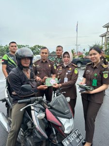 *“Lewat pembagian suvenir dan stiker, kami ingin menyampaikan pesan sederhana namun kuat: korupsi adalah musuh bersama. Pencegahannya tidak hanya tugas Kejaksaan, tetapi seluruh masyarakat,”* kata Anjasra.