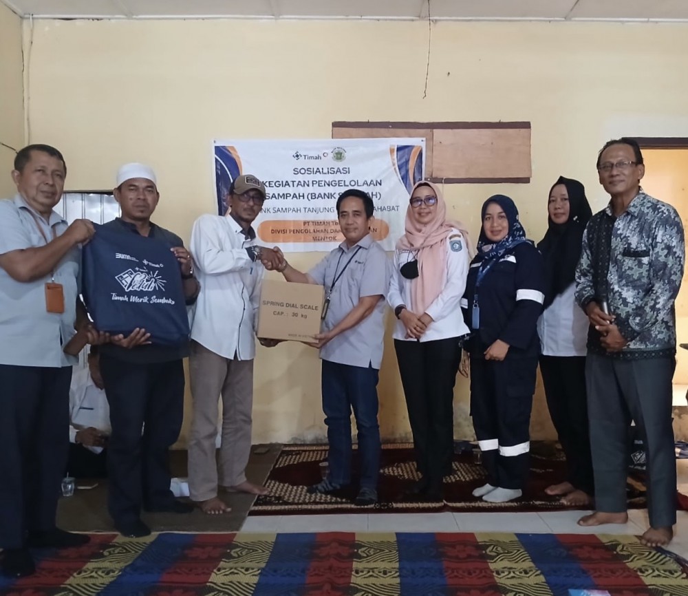 Dalam kesempatan tersebut, PT Timah juga menyerahkan bantuan peralatan penunjang operasional bank sampah berupa timbangan dan alat-alat kebersihan.