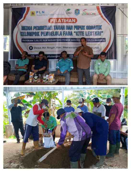Babeltoday.com, Bangka – PT PLN Nusantara Power Services (NPS) Unit PLTU Bangka bersama Komunitas Bangka Environment Creative Activist of “Kawa” (BECAK Babel) telah berhasil mengimplementasikan program pengembangan kelompok pengelola pupuk FABA Desa Air Anyir. Program ini terdiri dari musyawarah fasilitasi pembentukan kelembagaan kelompok, pembangunan Rumah Olah FABA, dan pelatihan masyarakat pembuatan media pembenahan tanah dan pupuk FABA.kamis 17 April 2025