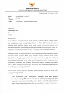 Dalam surat tersebut, KI Babel menegaskan bahwa lembaga ini memiliki mandat undang-undang untuk menjaga profesionalitas layanan keterbukaan informasi publik.