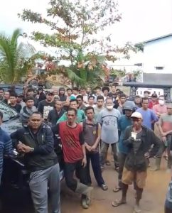 Video yang beredar memperlihatkan suasana cekcok hingga aksi kekerasan di depan area pabrik PT PMM, setelah tim satgas menghentikan sejumlah truk pengangkut pasir tailing yang hendak masuk ke dalam kawasan pabrik.