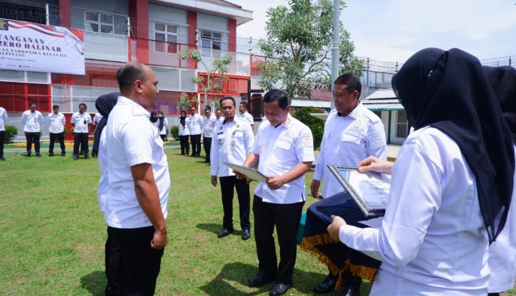 Pada kesempatan yang sama, Lapas Narkotika Pangkalpinang juga memberikan penghargaan kepada dua petugas yang berhasil menggagalkan upaya penyelundupan narkoba ke dalam Lapas.