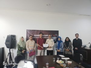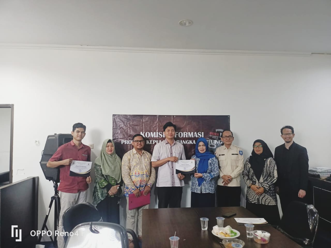 Caption: Penyerahan Sertifikat Magang oleh Komisioner KI Babel kepada mahasiswa Universitas Pertiba yang sudah mengikuti magang selama 4 bulan di KI Babel.