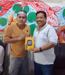 Kedatangan mereka bukan sekadar silaturahmi biasa. Dengan penuh antusias, Oding menyapa Prof. Udin dan meminta izin untuk berfoto bersama. Tak hanya itu, ia juga menyerahkan sebuah buku berjudul “Rumah Harta” karya Muhammad Imam Muttaqin—yang ternyata adalah kakak sekaligus mentor spiritualnya.