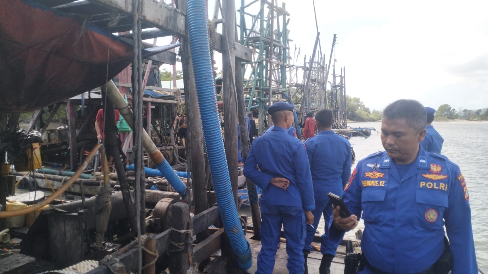Saat tim personil Satpolair Polres Bangka tiba di lokasi, siang itu sedikitnya 7 unit ponton tambang kedapatan sedang beroperasi. Menyaksikan kejadian tersebut tim personil Satpolair langsung menghampiri para pekerja yang ada di sejumlah ponton.
