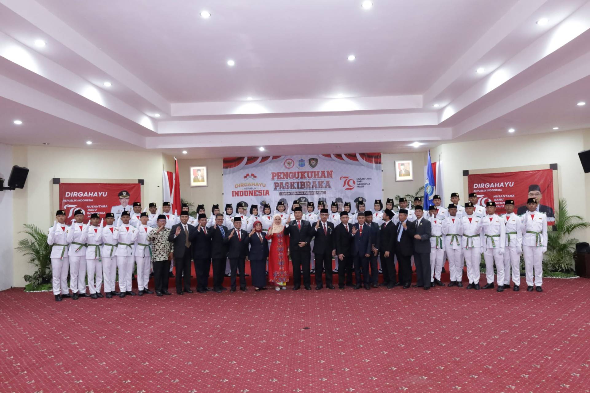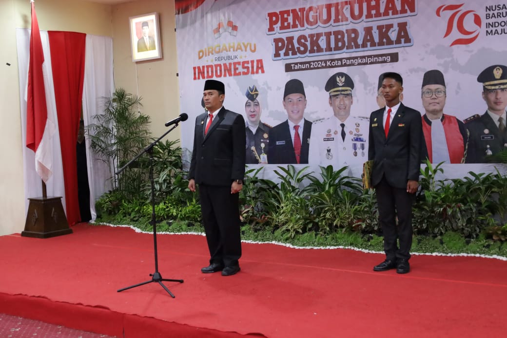 BABELTODAY.COM, PANGKALPINANG – Penjabat Wali Kota Pangkalpinang, Budi Utama sebut anggota Paskibraka memiliki keistimewaan, bukan hanya pasukan pengibaran bendera dan penurunan bendera pada peringatan upacara proklamasi kemerdekaan HUT RI ke-79 tahun tanggal 17 Agustus 2024, melainkan orang-orang pilihan sebagai putra dan putri terbaik Kota Pangkalpinang. Hal ini ia sampaikan kala membersamai pengukuhan Paskibraka Kota Pangkalpinang di Ruang OR Kantor Wali Kota Pangkalpinang, Kamis (15/8/2024).