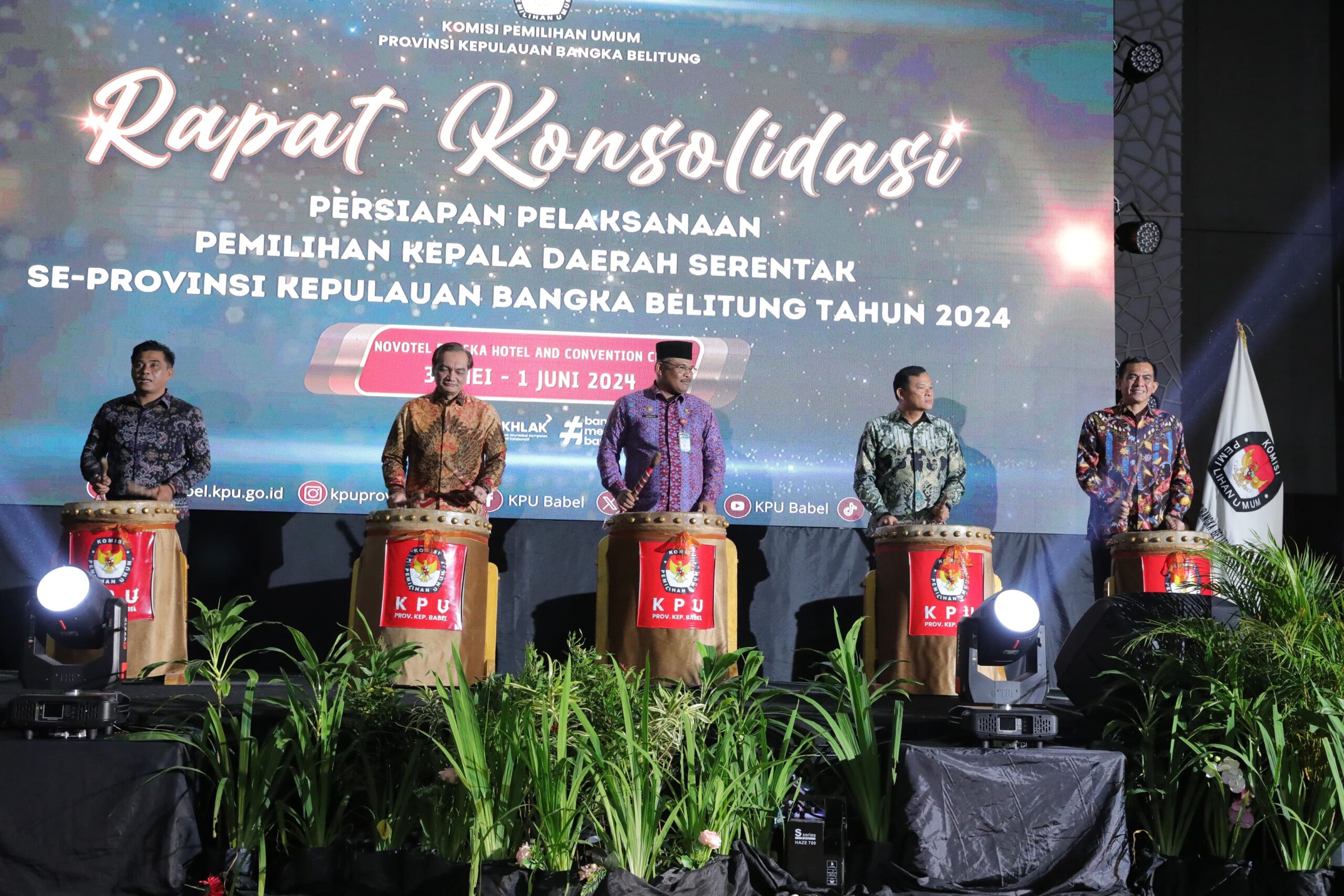 Turut hadir dalam rapat konsolidasi ini diantaranya, Anggota KPU RI Yulianto Sudrajat, Forkompimda, Ketua KPU,bdan Bawaslu Kep. Babel beserta jajarannya. (Diskominfo Babel)