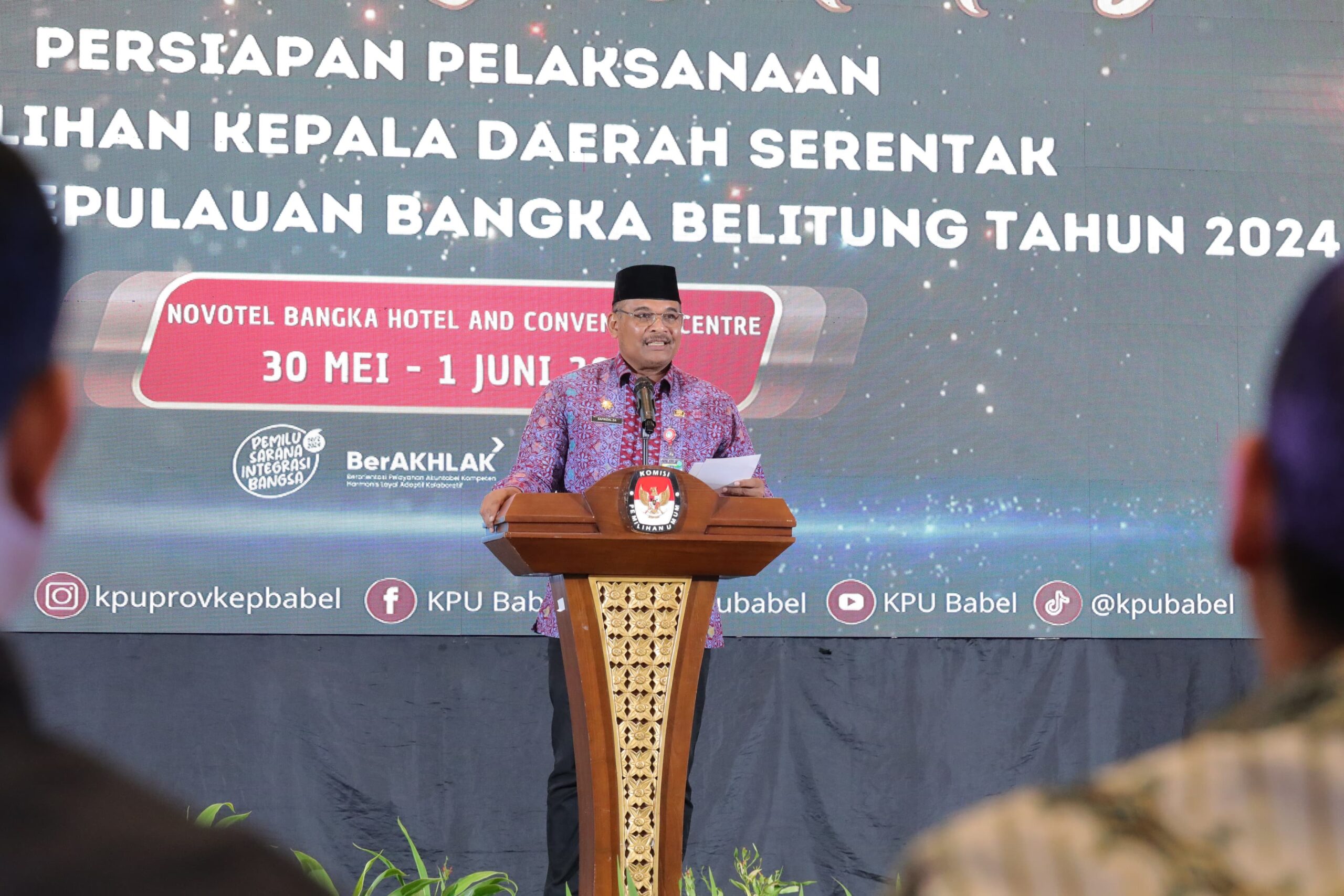 BABELTODAY.COM, PANGKALPINANG – Penjabat (Pj) Gubernur Kepulauan Bangka Belitung (Kep. Babel), Safrizal ZA membuka Rapat Konsolidasi Persiapan Pelaksanaan Pemilihan Kepala Daerah (Pilkada) Serentak se-Babel tahun 2024 yang diselenggarakan Komisi Pemilihan Umum (KPU) Babel pada Kamis malam. Sabtu (1/6/2024).