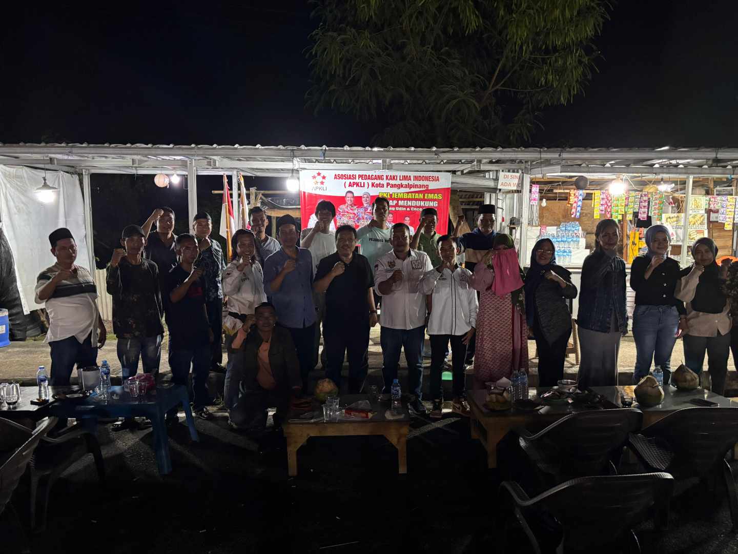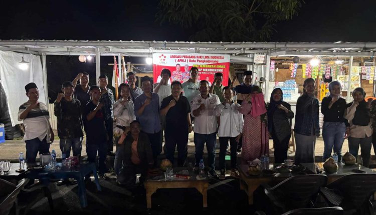 Langit malam di kawasan Jembatan Emas, Sabtu (12/7), menjadi saksi berkumpulnya puluhan pedagang kaki lima (PKL) yang tergabung dalam Dewan Pimpinan Cabang (DPC) Bukit Intan Asosiasi Pedagang Kaki Lima Indonesia (APKLI) Kota Pangkalpinang. Mereka berkumpul bukan sekadar untuk berdagang seperti biasa, tapi untuk satu misi: menyatakan dukungan mereka secara terbuka kepada pasangan bakal calon Wali Kota dan Wakil Wali Kota Pangkalpinang, **Saparudin dan Dessy Ayutrisna**. Minggu (13/7/2025).