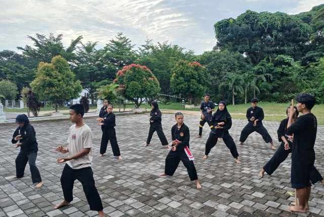 Para atlet Pencak Silat Perguruan Satria Muda Indonesia tampak antusias berlatih di Halaman Wisma Majapahit, Mentok Kabupaten Bangka Barat. Mereka telah menorehkan banyak prestasi dalam berbagai kompetisi silat.