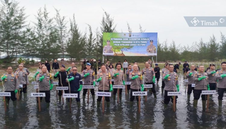 Direktur Operasi dan Produksi PT Timah Nur Adi Kuncoro turut hadir bersama Kapolda Babel Irjen Pol Hendro Pandowo dalam kegiatan penanaman mangrove dan cemara laut ini.