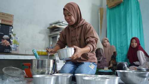 Kelompok UMKM Mandiri Puding Besar yang beranggotakan 15 orang, saat ini mampu mengembangkan usaha dari kue – kue kering hingga menu sayur masak dan aneka kue basah untuk acara – acara besar.