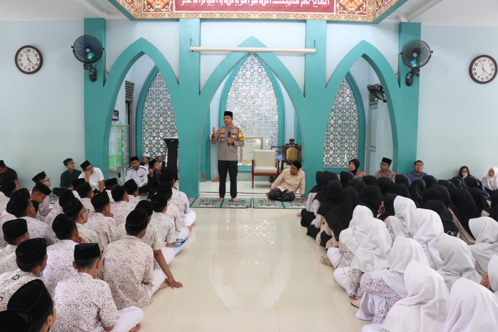 Dalam sambutannya, di hadapan ratusan santri dan santriwati tersebut Kombes Pol Zain Dwi Nugroho menjelaskan tentang kewajiban menuntut ilmu.