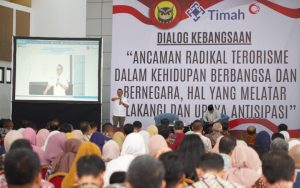 Dialog kebangsaan yang mengusung tema ‘Ancaman Radikal Terorisme dalam Kehidupan Berbangsa dan Bernegara Hal yang Melatarbelakangi dan Upaya Antisipasi dari Densus 88 Anti Teror Polri Satgaswil Kepulauan Bangka Belitung’ ini diikuti ratusan karyawan PT Timah Tbk.