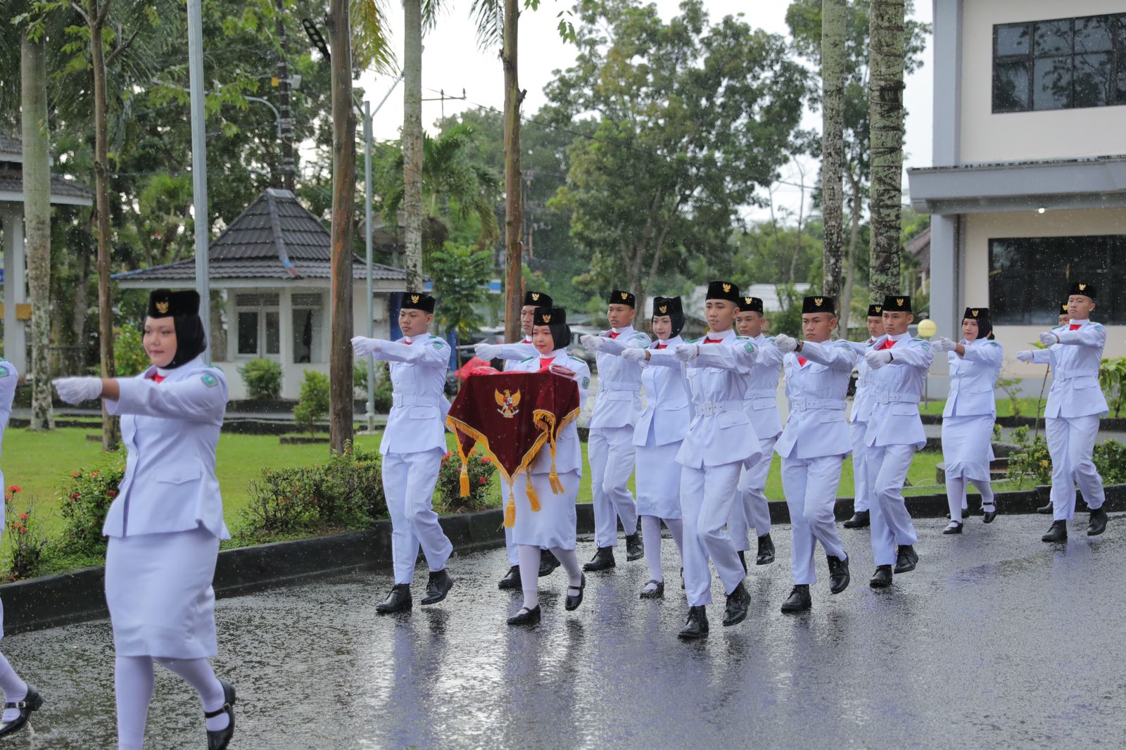 “Saya ucapkan terima kasih kepada para peserta upacara, karena dengan penuh dedikasi tidak bergeming meninggalkan lapangan upacara meskipun bermandikan hujan. Ini mengingatkan kita semua dengan para pahlawan yang tak bergeming bermandikan darah demi merebut kemerderkaan Indonesia,” ujar Pj Gubernr Safrizal mengawali pidatonya.