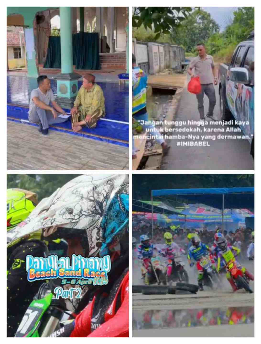 Babeltoday.com, Pangkalpinang – Setelah sukses menyelenggarakan ajang balap motor bertajuk Event Beach Sand Race 2025 di Pantai Pasir Padi, Pangkalpinang, Ketua Ikatan Motor Indonesia (IMI) Bangka Belitung yang juga bakal calon Wali Kota Pangkalpinang, Adhy Sarphio, kembali menunjukkan komitmennya terhadap masyarakat. Rabu (9/4/2025), ia menggelar aksi sosial dengan menyambangi warga Kelurahan Temberan sekaligus membagikan paket sembako kepada masyarakat yang membutuhkan.