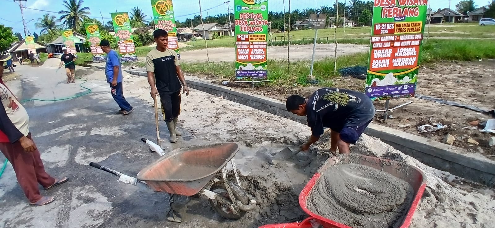 Inisiasi yang digerakkan oleh Kepala Desa Perlang ini berhasil menyemen bahu jalan di RT 04 dan RT 05 sepanjang kurang lebih 200 meter pada Jumat (12/12/2025).